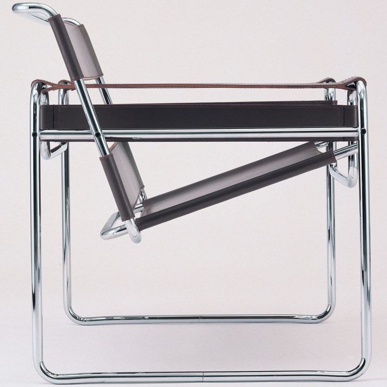 Breuer, trained at the Bauhaus, also served as a teacher in the cabinetmaking workshop. He used to use the bicycle as a means of transport, and this must have inspired him to create the B3 model, also known as the Wassily armchair, the first tubular-frame armchair with a leather seat, armrests and backrest, present in the Moholy’s Master House, but also an icon of modern design today: