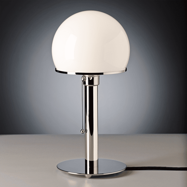 Moving on to lighting, the MT8 lamp by William Wagenfeld and Carl Jakob Jucker, designers of German and Swiss origin respectively, can be seen above the dining table. Also known as the Bauhaus lamp, it became the epitome of another of the school’s principles, ‘form follows function’. Constructed in steel and metal, its simple geometry also made it an easily industrialised product that is still in production today: