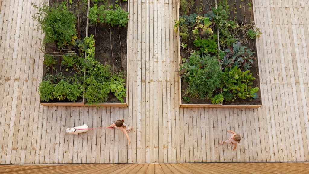 Que cada día vivimos más centrados en la intimidad de nuestro hogar es una realidad tan verdadera como que el único interés que tienen hoy en día los promotores de obra nueva es la especulación; esto ocurre en Madrid, en Zamora, en San Sebastián, y también en Calgary, Canadá, la ciudad protagonista de nuestro cuarto proyecto. Aunque lo habitual en la ciudad sea la construcción de promociones premium en la periferia, el proyecto GROW, desarrollado por el estudio canadiense MODA, es ejemplo de que puede irse un poquito más allá sin renunciar por ello al justificado y necesario retorno monetario. Se trata de una promoción de 20 viviendas de diferentes tamaños que tiene como objetivo reunir en el mismo vecindario a diferentes grupos demográficos de diversas generaciones y que incorpora, además, un huerto urbano tanto en la cubierta como en los alrededores. De esta manera, GROW se presenta como una reinterpretación de la «privatización» del edificio residencial, en la que las únicas oportunidades de interacción social con “los otros” suelen darse en el portal o en el garaje. De esta manera, los vecinos y sus amigos y familiares pueden participar en todas las fases de la agricultura, incluida la siembra, el mantenimiento y cuidado diario, la cosecha y la interacción con otros barrios gracias a la preparación y venta de cestas obtenidas en la cosecha.